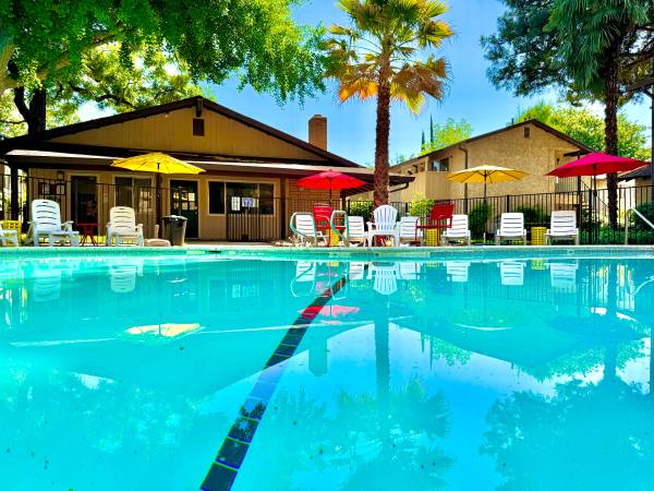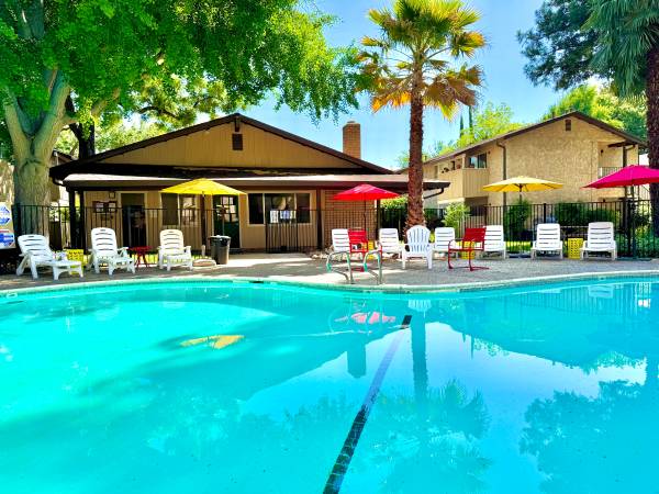 Whispering Trees Apartments are close to Chico State and Downtown. Our Property is a quiet, serene complex that we pride ourselves in maintaining. We have a gorgeous, newly updated/renovated Pool Area. We also have a large Rec Room with a Ping-Pong Table, Pool Table and Foosball! Tenants regularly reserve the Rec Room for family gatherings and special occasions. We also have BBQ and Picnic Table areas to enjoy as well. Laundry is on-site and we use an App to make it easier for our residents to pay (No hoarding Quarters for laundry!).