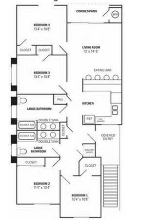 Fully furnished 4 bedroom 2 bathroom apartment. Furnished includes furniture, dishware, bedding, linens, pots and pans, and more.