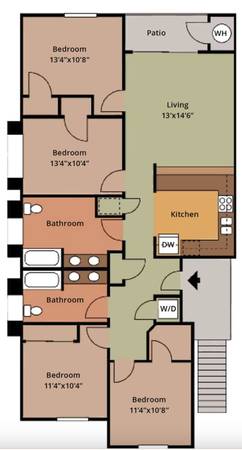 This listing is for one of the bedrooms in a 4-bedroom student housing apartment. You will be paired with 3 other roommates or you can bring your own roommates.