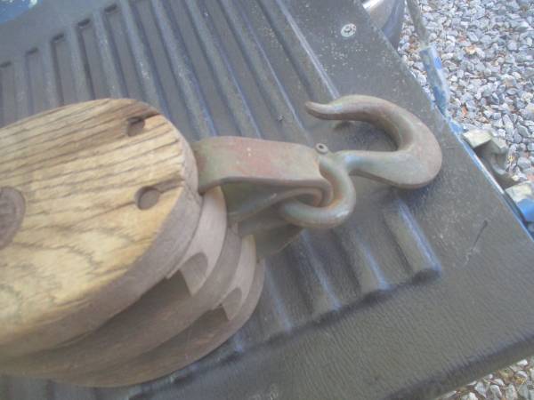 This antique pulley still rolls and works great! All the metal fittings are in perfect shape.