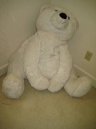 Made of fur and stuffed (pollyester stuffing ?) white/black 4'l. X 3' legg span Sitting is best and used in display inside. Child 3+ under adult supervision. CASH ONLY. Paradise, California.