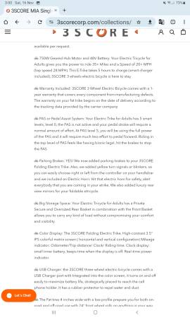 E-Trike for sale. Paid $3,400 a few years ago. Hasn't been ridden much. 750W Motor and 48V Lithium Rechargeable Battery - Etrike 24 Inch Fat Tire - Foldable Electric Cruiser Tricycle. Not able to ride it anymore due to medical issues. Asking $1,600 OBO. Comes with helmet, bike lock, might have extra tubes for tires. Must pick up.