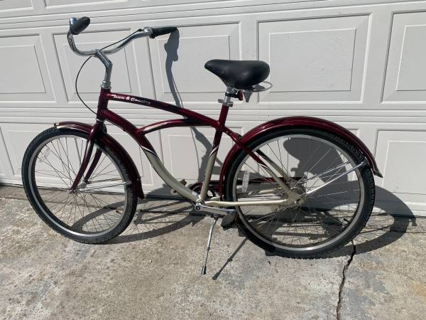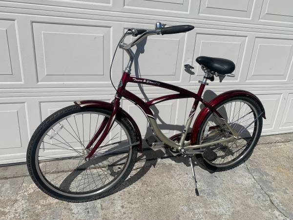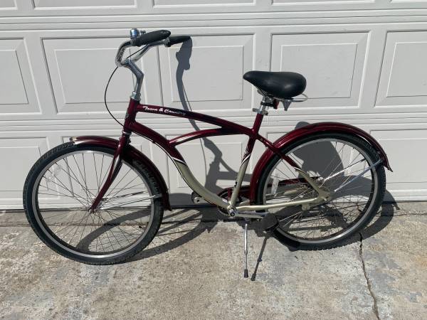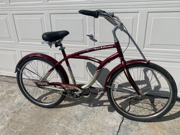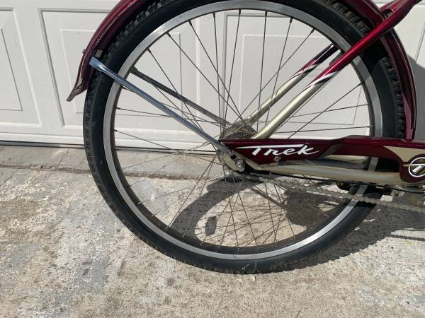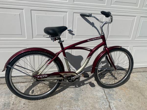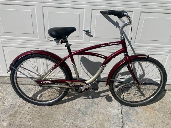 Trek Town & Country Beach Cruiser Bike 4 speeds 26" tires, Frame Construction TIG-welded, Frame Material Aluminum, Rear Coaster Brake, Internal 4 speed Rear Hub, Matching Fenders and Chain Guard, 26" tires, Everything works, 20" frame - call or text 530-3two1-9229 mike