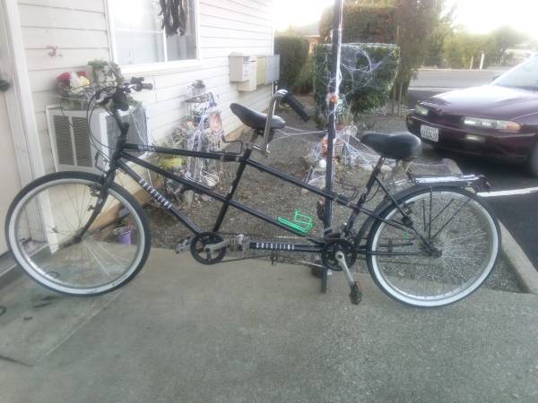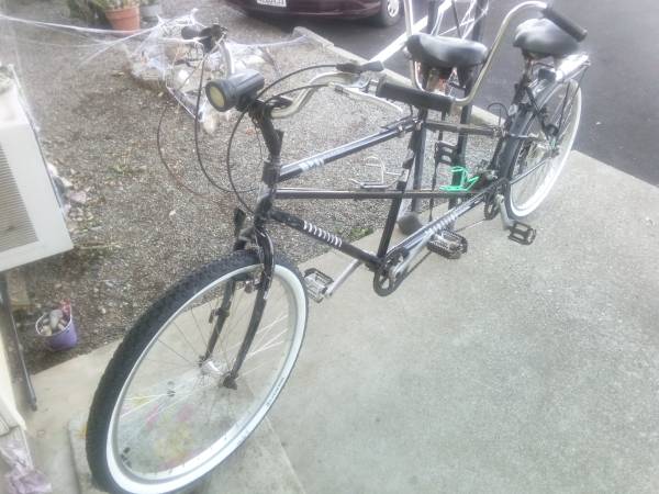 Crestline tandem bicycle built for two. 26 inch tires..just spent $100 on new whitewalls, tubes, handgrips and accessories . This bike is smooth. $300 O.B.O. ASK FOR Mike.