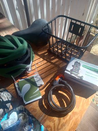 Saddle bag.new helmet.new seat. Basket.cell phone mount lock