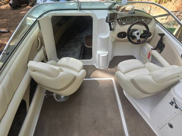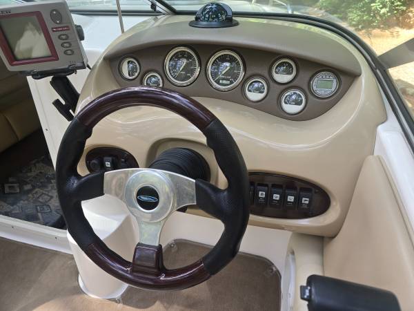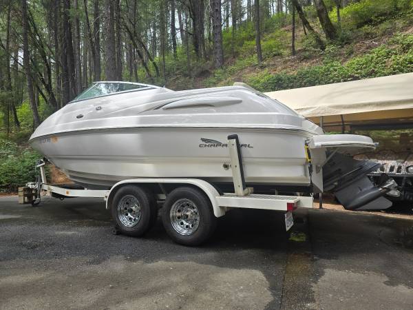 2003 Chaparral 215SS Cuddy 21 ft. w/Volvo Penta 5.0 GXI V8 230HP w/321.0 original hours. Trailer is a 2003 Zeiman. Has a four blade Signature prop. Property taxes this year were $122.00. Sleeps two adults comfortably down below. The last time used on the lake was once in 2021. Annual lake adventures consist of pulling it from the carport to the driveway to clean, hook up and run and I'm finally over it. It is all original and for its age, it's in fairly good condition. It has its nicks and rub marks on the sides and bottom of the hull and the upholstery has a few very small tears here and there. I wouldn't take it out on the lake without a new impeller because of its age. Impeller replacement is not expensive as read online but I'm NOT a boat guy. The bimini top has a rip/hole in it and would need a fabric repair before use otherwise the tube structure is perfectly fine. Asking $17,500.00 @ show contact info