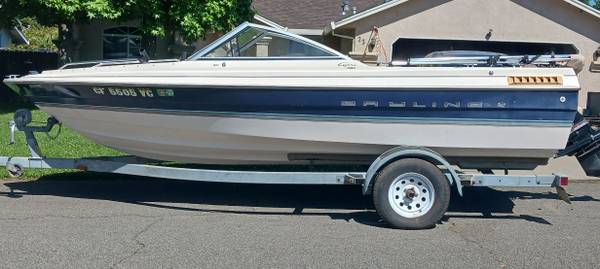 1997 Bayliner, 3.0 four cylinder engine. New seats and carpet over solid floor. Bimini top, Upholstery is mostly good with some sun fading. Galvanized trailer. This boat looks good and runs good. I am replacing it with a pontoon boat. Asking $5500.00 Please call show contact info