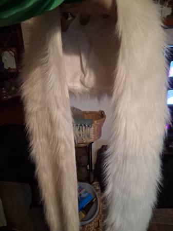 3 in 1 acts like a hat scarf and mittens...the white one has a built in led light strip and the brown one has alot of cool hidden pockets...23 bucks each