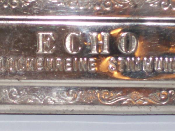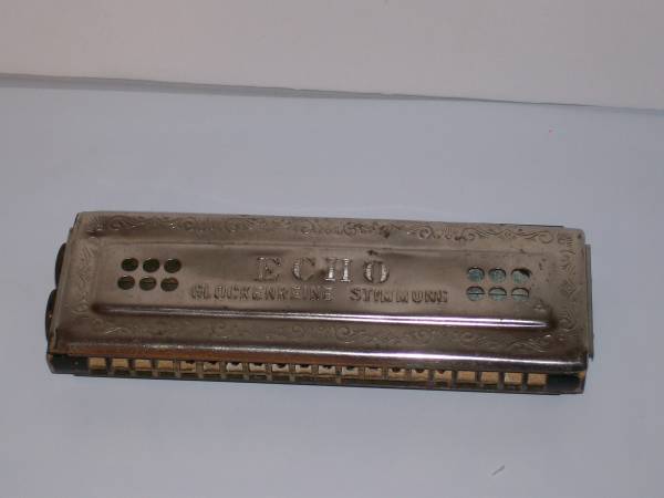 Selling a Vintage 1940's M. Hohner "Echo" Harmonica. Glockenreine Stimmung. Double side Tremolo Harmonica. Large 6" long x @"wide x 3/4" deep. Made in Germany. Asking $75.00 for it.