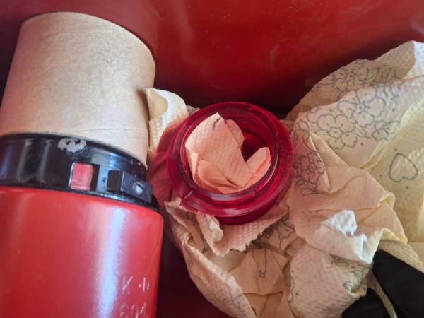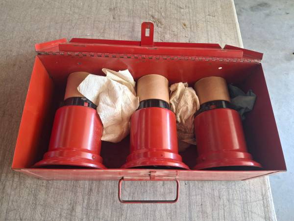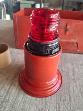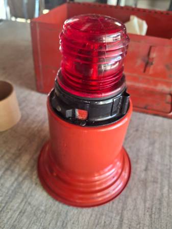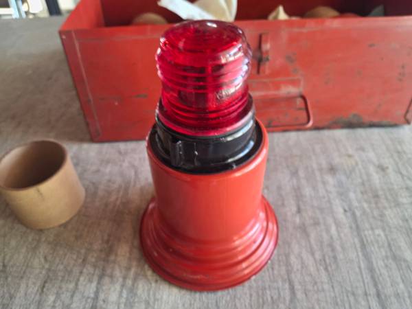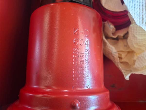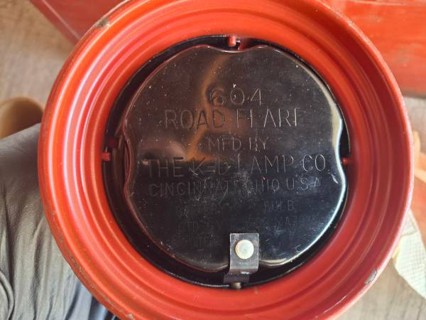 K-D Lamp Co Road Flare #604 Set 3 w/Box Red Plastic & Metal Battery Operated 2 are missing bottom battery cap.