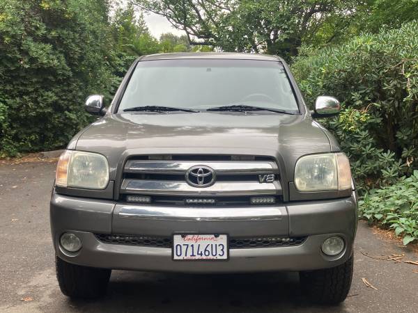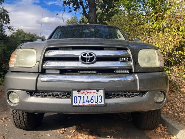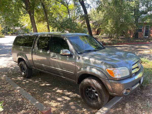 2005 Toyota Tundra. Well taken care of, clean with regular maintenance. Brand new 10 ply mud and snow tires, ball joints, front axles, and tie rods. Smogged in September. Bed liner, matching Leer camper shell with heavy duty rack. Tow package with air bags. Accessory running lights and accessory battery. New drive belt, serpentine belt at 143,871 miles. New rack and pinion and steering gear at 181,063 miles. New timing belt and timing belt tensioner/idler at 182,613 miles. New front struts at 187,691 miles. New cylinder head gaskets, ignition coils, spark plugs, radiator hoses, thermostat, timing belt and timing belt tensioner at 191,710 miles. New transfer case at 206,874 miles. A/C checked and recharged at 214,179 miles. Odometer is at 215,165.
