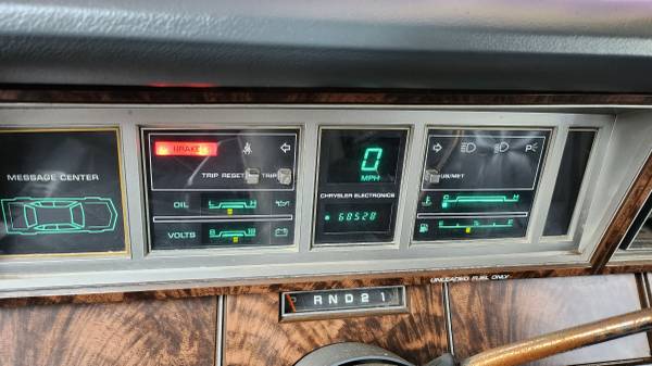 Selling my Clean Title low mileage 68K 1985 Chrysler New Yorker Turbo with Corinthian leather throughout, power windows locks mirrors seats and yes it has the computer that talks to you "don't forget your keys" ect. This is the highest trim New Yorker you could get in its time with every possible option including the digital cluster display which all works.