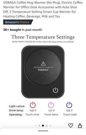 I bought a few of these for different rooms in the house and realized I only need two. They work great if you’re the type who doesn’t want their hot coffee getting cold while you’re getting ready in the morning!