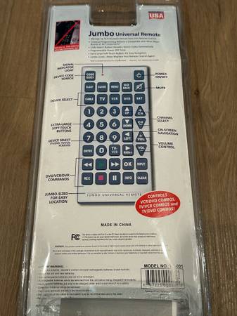 Brand new, sealed packaging. Replace all your remote controls with one convenient unit. Compatible with most major brands. Extra large, soft touch buttons. Includes user guide. Requires 2 AA...