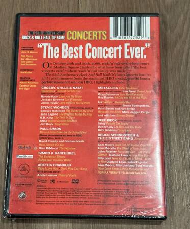 Brand new, sealed packaging. The 25th anniversary Rock ‘n’ Roll Hall of Fame concert DVD is a music and concert genre movie presented in DVD format.