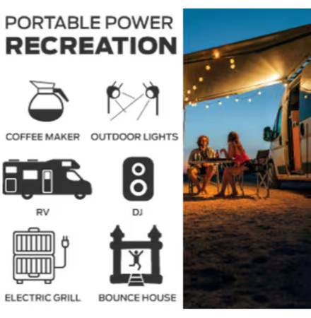 Four 120-Volt AC outlets, one 120/240v twist-lock outlet (L5-30R), one 120/240v twist-lock outlet (L14-30R) to provide power to a variety of appliances, tools, and devices