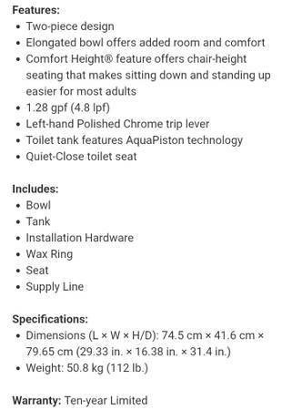 *NOTE: Tank was cracked but ordered a new one so comes with backup aquapiston flush and 2nd lid, if desired,