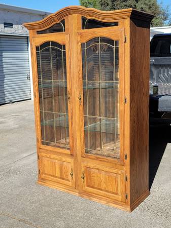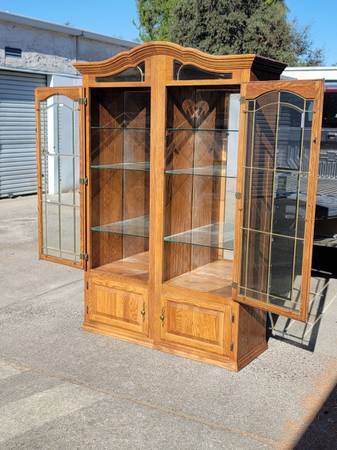 Solid and beautiful, lighted with 6 glass shelves. Each cabinet is 23" wide for a total of 63" total width, 72" tall 17" deep Curbside drop off in Chico is $30 extra Kim 53o…355…9oo7 Jen...