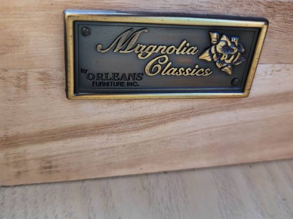All wood with beautiful details, nice clean drawers that are big and open easy. Minor cosmetic imperfections that are only visible up close. The dresser is very functional and lightweight so it's easy to move. Great size!