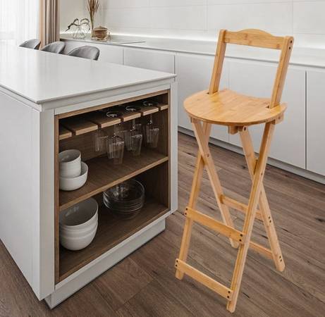 NEW IN BOX RETAIL: $300 per 4 after tax. SOLID BAMBOO WINSTON PORTER "MICHIYA" 30" FOLDING COUNTER STOOLS. SEE MORE GREAT PRODUCTS FOR YOU YOUR HOME AND LIFESTYLE RIGHT HERE. JUST TAP THE "more ads...