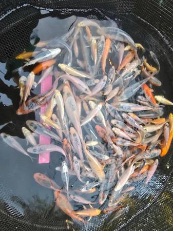 Koi fish for sale! We currently have 150 koi fish available and every fish must go! $1 to $5 per fish, bulk deals available! $20 minimum purchase. Text or email for more information.