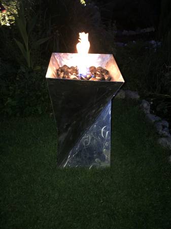 Heavy gauge steel plate. 42" Tall Propane burner $900 Wood burning $600 Custom colors available for additional charge. Yard art. Metal sculpture. Garden decoration. Modern. Contemporary. Welding....