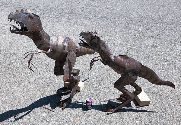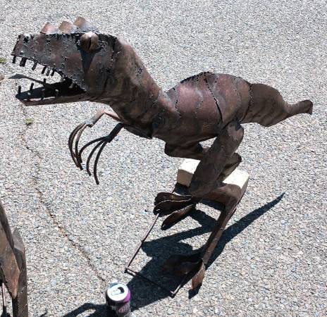Two large welded metal dinosaur figures. Very cool for yard/garden/patio display. Notice soda can in pictures for sizing. Both for $250. They were about $500 new and are still in great condition....