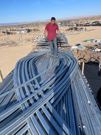 All the hoops are made with hot galvanized steel pipes. We have many sizes (22, 24, 30, 35 foot wide, any length) and types (round, oval, different diameter), new and used complete greenhouse kits with all components and accessories in stock, ready to be loaded into your truck or trailer.