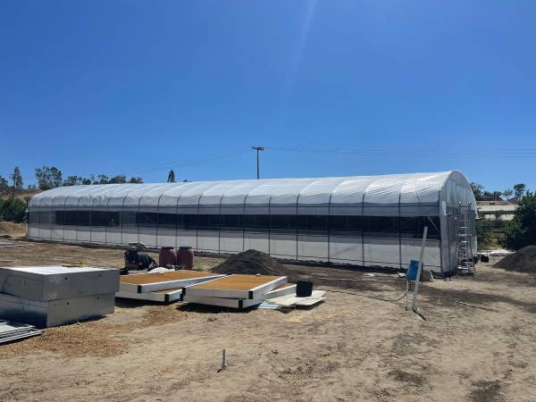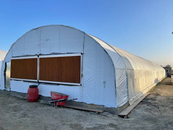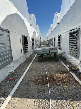 We are liquidate selling 200 new and like new double hoop interior light dep, wind resistant greenhouses, with new plastics, exhaust fans, wet walls, horizontal flow fans, wiggle wire channels and wiggle wires.