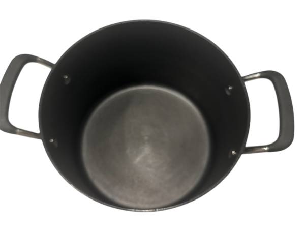 Excellent pre-owned condition. Includes glass lid, and is oven and dishwasher safe. Silicon handles allow you to lift it off the stove without an oven mitt. Sheri's Consignments