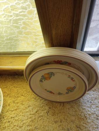 Corelle Abundance Fruit Peach Grape Pattern Beige 9 Vintage Dinner Plates 10" and 4 matching salad plates. $25.00 702-two-zero-5-6-two-85