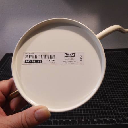 Vattenkasse watering can, originally $15, asking $10, seldom used, clean but a little dusty inside, no apparent damage. https://www.ikea.com/us/en/p/vattenkrasse-watering-can-ivory-gold-40394118/