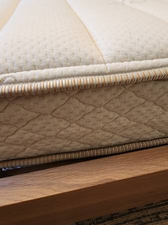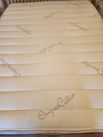 Selling Queen size mattress in our guest bedroom. Like new! This is a cool mattress because it has a medium side and a firm side depending on how you flip it. It also has an organic cotton quilted cover. It's super comfortable.