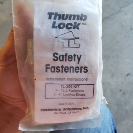 Call. 5 3 o ~~ 5 I 9 ~~ I 5 I 4 TL-200 kit Thumb Lock Safely fasteners Kit, 100lbs (4 buckles, 2 straps) 10 kit available Call. 5 3 o ~~ 5 I 9 ~~ I 5 I 4