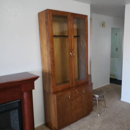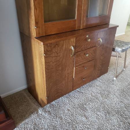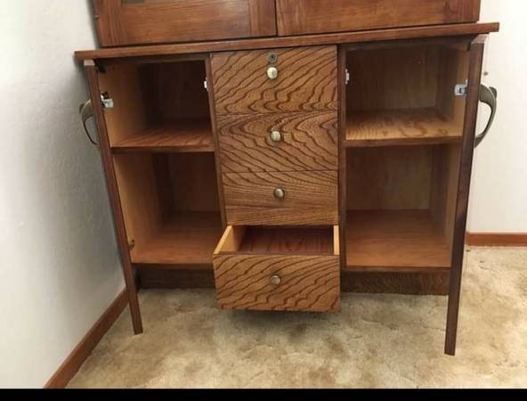 Beautiful, hand crafted pieces. Sturdy, perfect condition. cabinet measures 82 inches tall x 37 inches wide x 16 1/2 inches wide.
