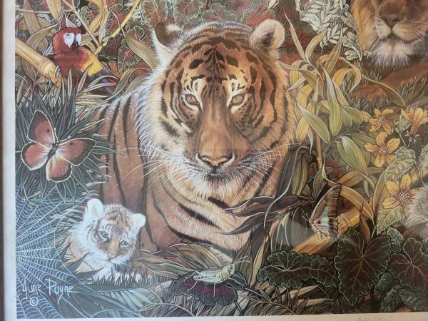 Beautiful wildlife art print by celebrated British artist June Payne Hart. Titled Animal Fantasia II, this is a limited edition lithograph, hand-signed by the artist and individually numbered #424 of only 750 prints made. Comes with the original Certificate of Authenticity.