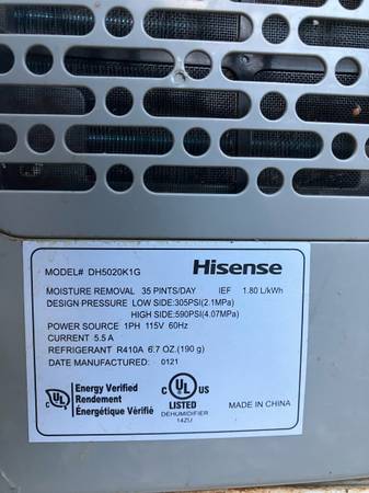 35 Pints/Day Dehumidifier ~600 Watts Works Great $125 Text Only: Eight45-Six37-Four830
