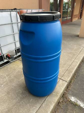 60 gallon plastic barrel Full lift screw-on top Like new, these contained olives and were used once RecycledSkyway Tool Center, 2499 Bruce Road, Chico - corner of Skyway & Bruce. Hours: M-F 9-5,...