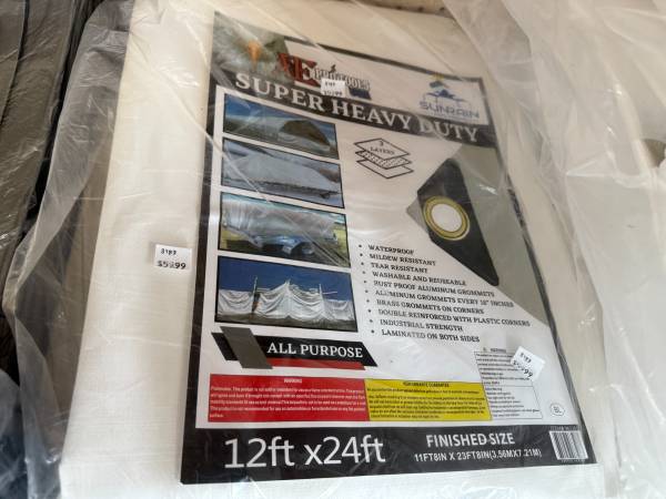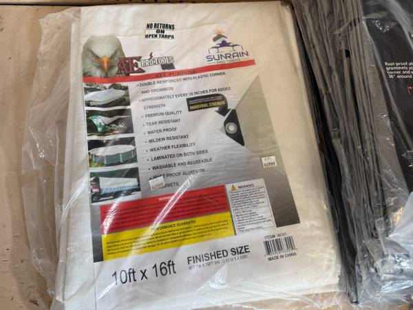 Skyway Tool Center has the following tarps in stock starting at $7.99: 5' x 7' White HD - $7.99 6' x 8' Beige HD - $14.99 10' x 12' White/Silver HD - $22.99 10' x 16' White/Silver - $32.99 10' x 20'...