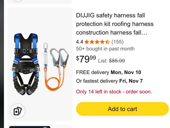 Dijjig safety roofing harness;; never uses Thought I was going to need them and never did use them. Never taken out of the package (2) available Please text;
