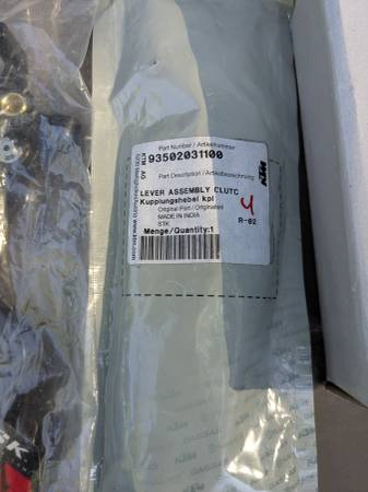 Parts for the last gen KTM 390 ADV, up to 2024. New, sealed oem clutch lever ($15), new, sealed Tusk brake lever ($25), new sealed oem KTM air filter ($22). Used Amazon/eBay billet oil filler cap and used Amazon/eBay rear rack. $62+ in new parts plus the used parts. $50.