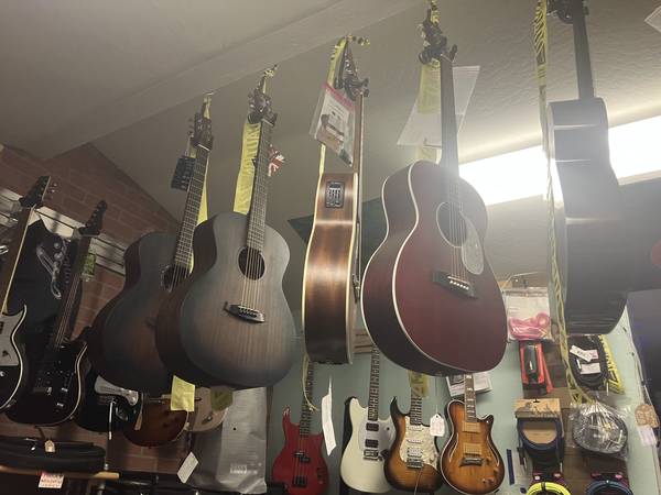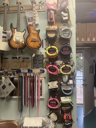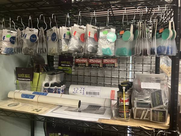We still have plenty of music goods left such as elect/acous-guitars, bass, ukulele, elect-mandolin, strings for various stringed instruments, amps, stands, cases, tuners, mics, straps, strap-locks, pedals, picks, slides, cables/connectors/power-cords/ect, other audio equipment, parts, harmonicas, drum sticks/accessories, wood & wind cleaning-lub-supplies/mouth pieces, music-books, used music magazines (including some vintage ones), merch and more…