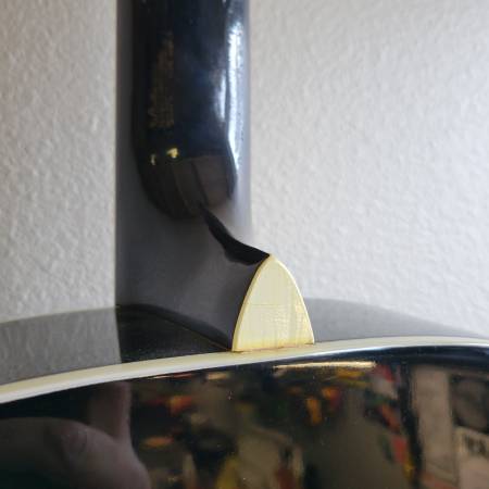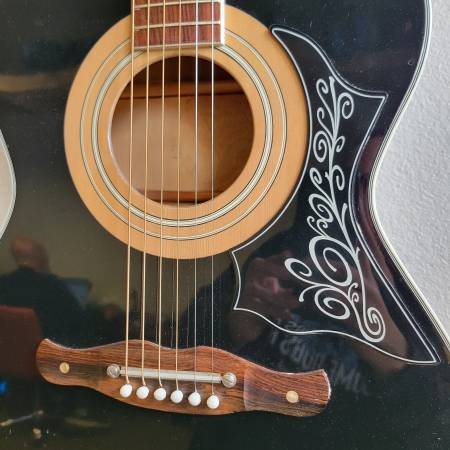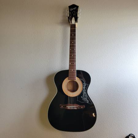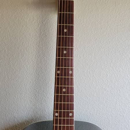 These are cool and kinda whacky guitars, with looks like no other! The top is solid spruce, giving the guitar some pretty good tone. None of these are the best playing guitars you'll come across, but this one does stand out among others like it. We were able to get it nicely set up with good action.