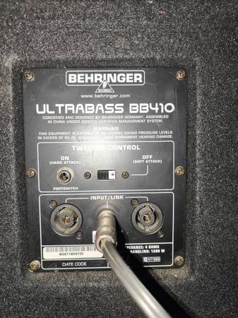 Behringer Ultrabass 450 Watt head with four built in effects ("Ultrabass", "Deep", "Shape", and "Bright") and a matching 4x10 cabinet rated at 1200 watts. I've had them for years and played some...