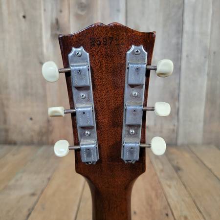 The fully hollow thinline body paired with the integrated “melody maker-style” pickup and pickguard assembly creates a warm, open, and articulate tone with a sweet top end and a mellow, woody midrange. Whether played clean for jazz, pushed for blues, or used for recording indie and lo-fi textures, the ES-120T sits beautifully in a mix. This 1965 example is in excellent condition, showing minimal wear and exceptional structural integrity—rare for a model that often shows plenty of use.