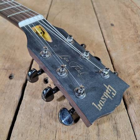 The BFG’s distinctive pickup combination—a P-90 in the neck and a Burstbucker in the bridge—creates an exceptional tonal range, from warm, vintage cleans to aggressive rock crunch. The unbound rosewood fingerboard, no-pickguard design, and rugged feel give it an earthy, organic vibe that many players love. This example is in excellent condition, all original with the exception of the missing truss rod cover, and comes with a Gibson gig bag.
