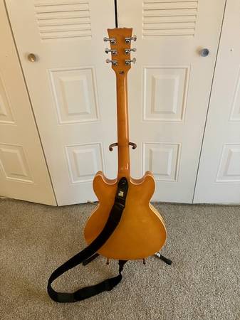 Beautiful guitar. Now is sold out on HB website. Pair this guitar with HB’s 15 watt tube amp and you have some really nice clean tones. I’ve played this a lot over the last three years and it's still in great condition excepting a hole where I tried to affix the strap mount once (it didn’t hold). Has a few normal small scuffs as well. I also added a Deusenberg Les Trem II for gentle vibrato action as well as a graphite nut. Only needs new strings. Locking strap included. Not interested in trades or lowering price.