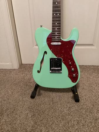 Thinline Telecaster style player guitar. Surf Green. In mint condition! Pickups are Fender Deluxe Drive pickups. Features a 4 way switch. Satin smooth neck, finished with Tru-Wax only that is very...