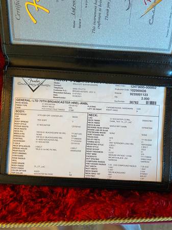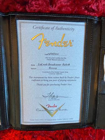 The guitar is available with different control configurations. The standard version is wired for standard Telecaster operation, but an optional original Broadcaster wiring kit is included in the case to replicate the unique "blend" circuit used in the original Broadcasters. Some versions feature a 3-way blade switch with a blend pot, while others have a simpler volume and tone setup. The guitar comes with a variety of premium features, including a period-correct black phenolic pickguard, chrome hardware, vintage-style tuners, and a custom Fender Custom Shop G&G Tweed Hardshell case with a certificate of authenticity (COA) and case candy.