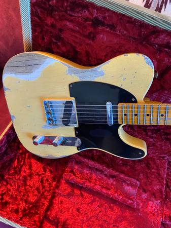 The 2021 Fender Custom Shop 70th Anniversary Broadcaster is a limited-edition guitar released to commemorate the 70th anniversary of the original Broadcaster, which was first introduced in October 1950. This model is available in multiple finishes and relicing styles, including Butterscotch Blonde, Nocaster Blonde, and Aged Nocaster Blonde, with variations in aging such as Heavy Relic, Journeyman Relic, and Relic. The guitar features a resonant ash body with a nitrocellulose lacquer finish, a rift-sawn maple neck with a 1950 Broadcaster "U" profile, and a compound radius fingerboard (7.25" to 9.5") for enhanced playability. It is equipped with hand-wound '50-'51 Blackguard pickups, which deliver a rich, vintage tone.